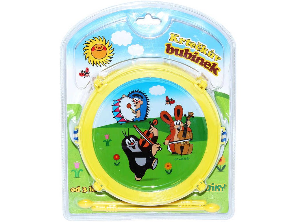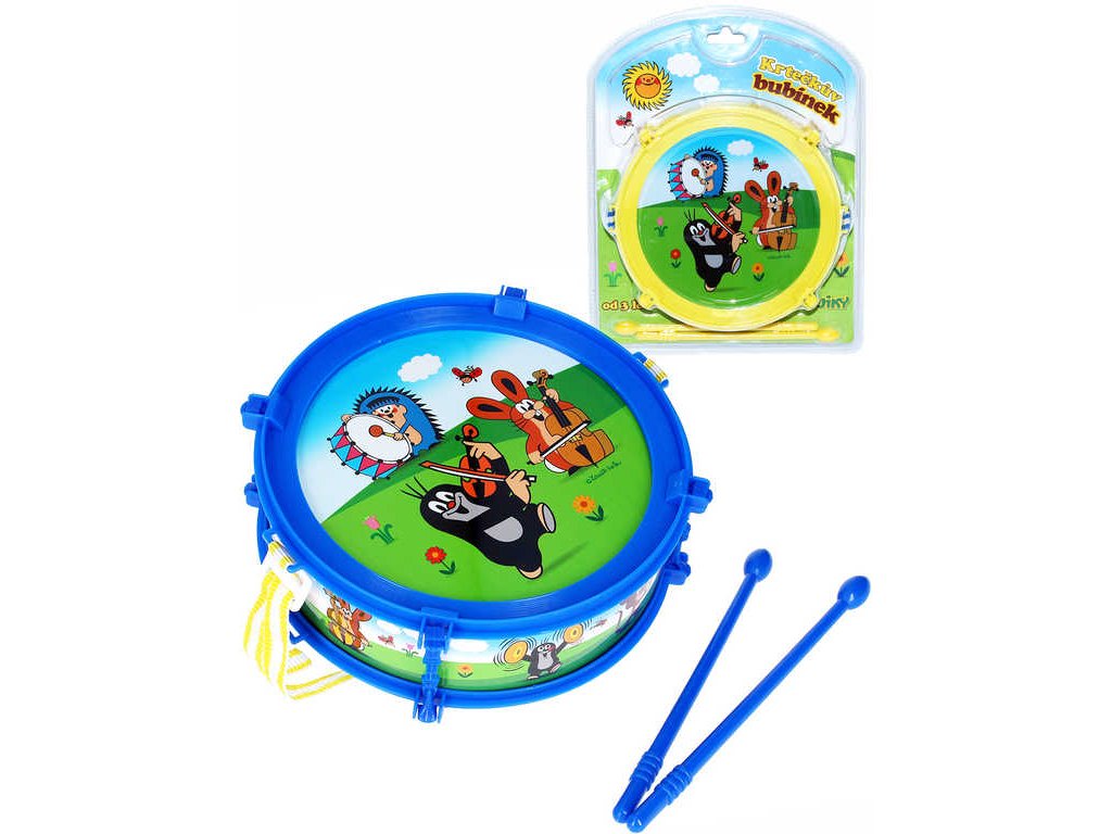 Krtečkův bubínek ve dvou barevných variantách. Plastový bubínek s Krtečkem se dvěma paličkami a popruhem přes rameno, abyste mohli bubnovat i za chůze. Baleno na kartě.