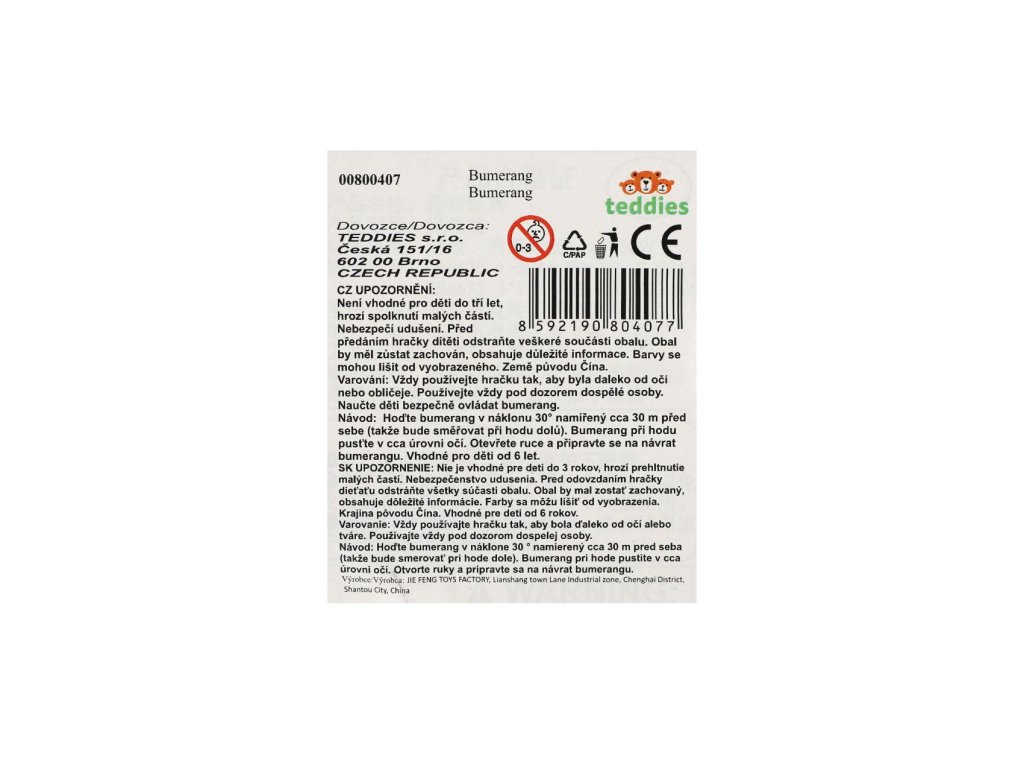 Tento pěnový bumerang je ideální pro venkovní zábavu! S délkou 43 cm je snadno ovladatelný a díky měkkému pěnovému materiálu je bezpečný i pro děti. Skvělý pro trénování koordinace a obratnosti, nebo pro jednoduše zábavné hry na zahradě, v parku či na pláži.