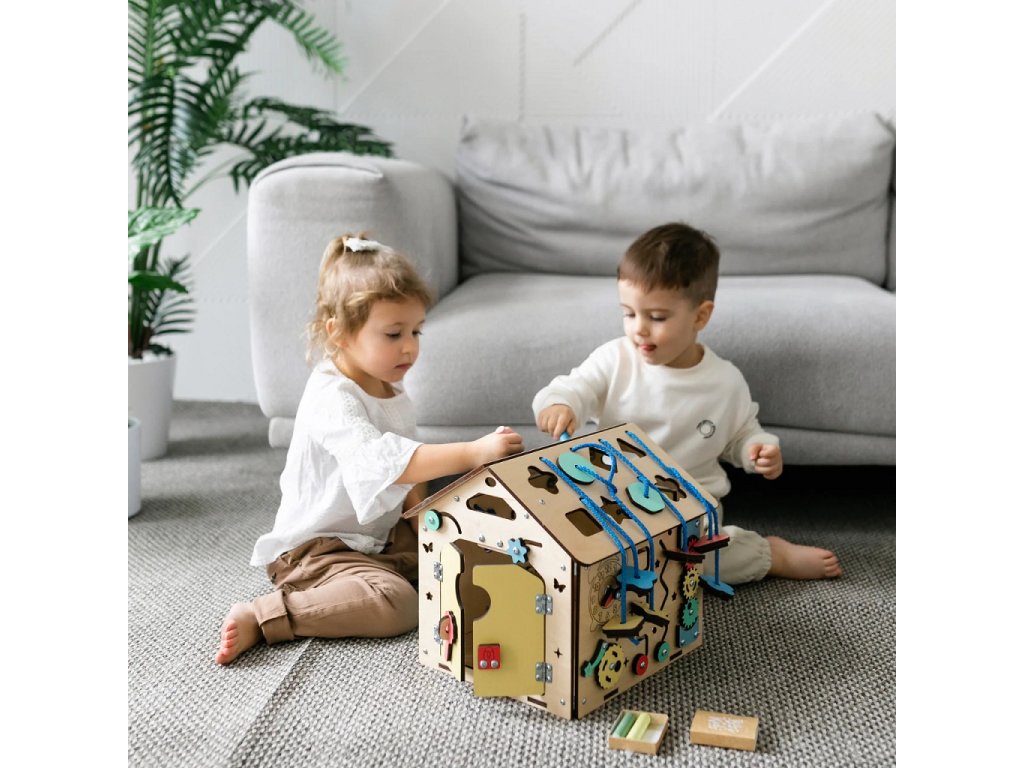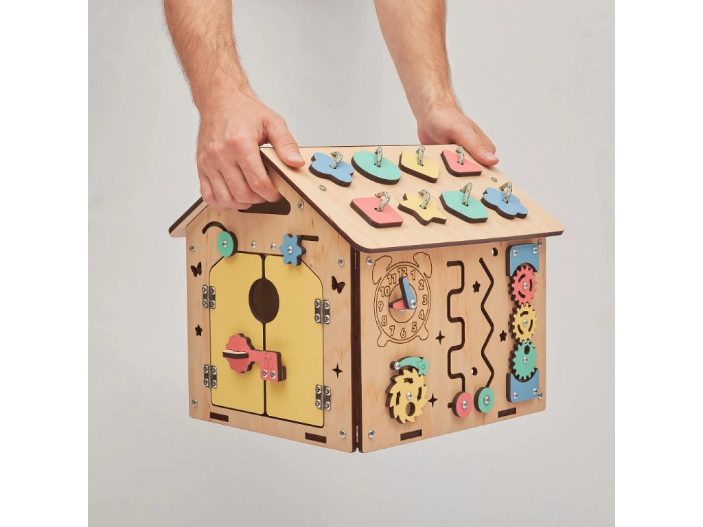 Vítejte ve světě vzdělávacích hraček pro batolata!Dovolte nám, abychom Vám představili hrací desku v podobě Maisonnette Mini. Tato jedinečná dřevěná hračka byla vyvinuta podle metody Montessori. Je navržena tak, aby Vaše dítě na dlouhou dobu zaujala a Vám nabídla trochu odpočinku. Vaše dítě se učí a rozvíjí prostřední hty. Domečke kombinuje různé prvky speciálně navržené tak, aby zlepšovaly motorické dovednosti, koordinaci ruka-oko a logické myšlení Vašeho dítěte. Díky svým kompaktním rozměrům se skvěle hodí do malých prostor. Každý prvek desky s aktivitami slouží svému účelu. Zámky k posílení jemné motoriky, zipy k procvičování upevňování a rozvoji smyslů, třídicí aktivity k podpoře logického myšlení a řešení problémů a mnoho dalšího. Třídicí prvky jsou k desce bezpečně připevněny pomocí šňůrek, aby se neztratily. Uvnitř domečku se nachází tlačítková baterka, která se jistě zalíbí každému batoleti. Díky této baterce můžete desku s aktivitami používat také jako noční světlo.Vsaďte na jedinečnou metodu Montessori a nechte své dítě objevovat a rozvíjet se prostřednictvím hry. S nástěnkami aktivit dáváte svému dítěti možnost učit se a rozvíjet a zároveň se bavit.Domeček je vyroben z kvalitní březové překližky a lakovaný vodou ředitelnými barvami, je bezpečný a odolný.Barevné odchylky, suky či drobné opravy ve dřevě jsou přirozené a dodávají výrobku jedinečný charakter. Zvláštní pozornost věnujeme detailům a kvalitě každého výrobku, aby mohl vaší rodině dlouho sloužit a byl předáván budoucím batolatům ve výborném stavuBarva produktu se může mírně lišit od fotografie v závislosti na nastavení vašeho zařízení. Hlavní vlastnosti: bezpečný a odolnýkompaktní rozměryinspirace Montessori pedagogikouobsahuje interaktivní motorické prvkyrozvíjí jemnou motoriku, kreativitu a logické myšlenívyrobeno z kvalitní březové překližky, bezpečné laky na vodní bázivyrobeno v České republice