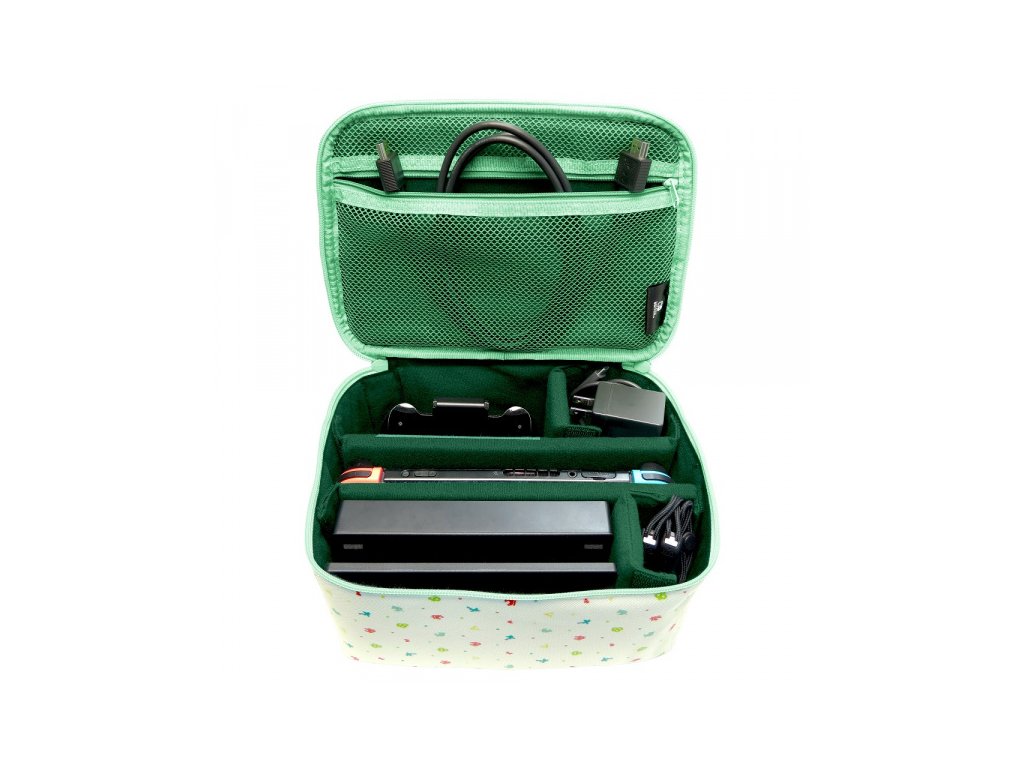 Vezměte si vše s sebou díky kompaktnímu přenosnému kufru HORI. Toto kompaktní řešení pro přenášení Switche má vyhrazené vnitřní kapsy pro konzoli, dokovací stanici, síťový adaptér a také rukojeť a Joy-Con ovladače. Nosit můžete v ruce nebo přes rameno. S grafikou Animal Crossing. Oficiálně licencováno společností Nintendo.