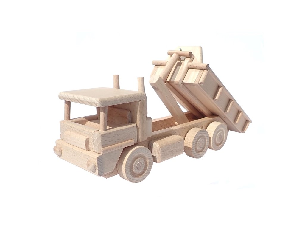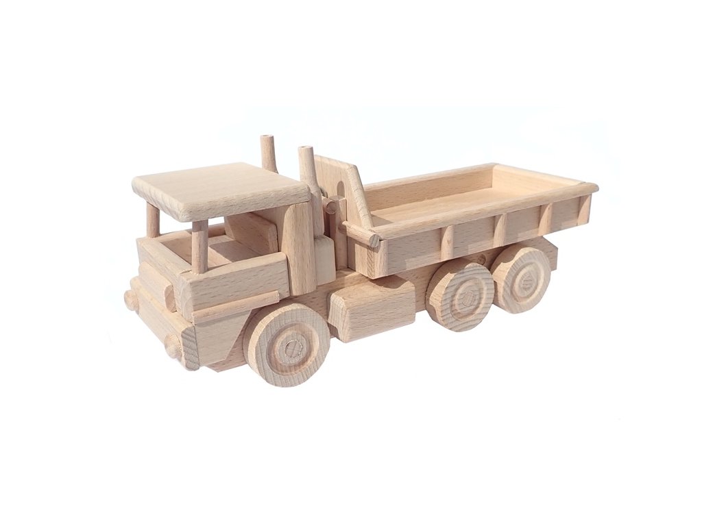 Dřevěný model auta je vyroben z vysoce kvalitního bukového dřeva. Jeho povrch je pouze voskován a leštěn, není nijak chemicky upravován či barven, aby byl zachován přírodní vzhled. Dřevěnému autu se točí kolečka a nemá žádné ostré hrany. Je vhodné i na pískoviště. Hlavní vlastnosti: precizní zpracování bukového dřeva zaoblené hrany pohyblivé prvky modelu