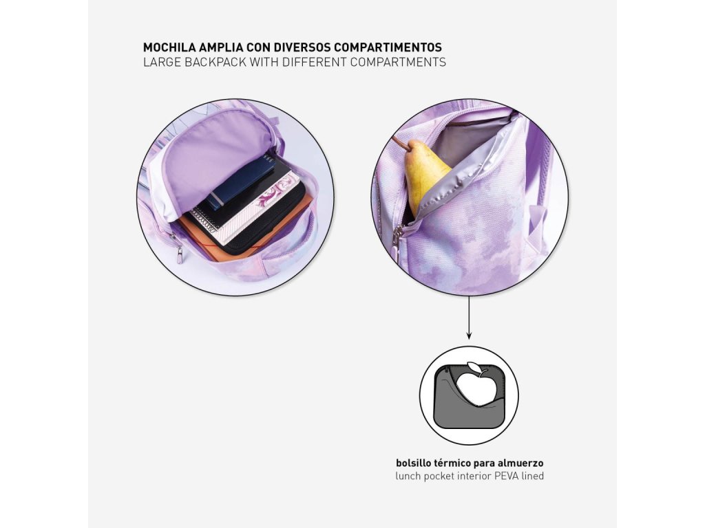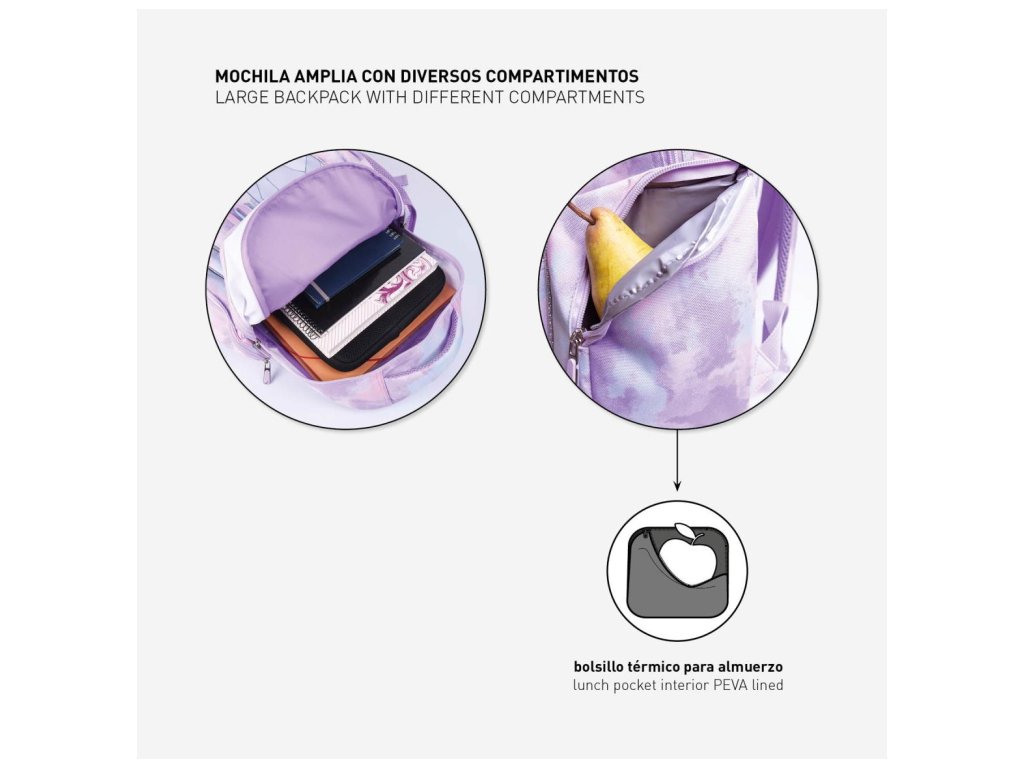 Školní dětský batoh v modro-růžovém provedení s motivem Ledového Království. Funkční pohodlný batoh obsahuje dvě kapsy na zip a na boku jednu síťovanou kapsu na láhev s pitím. Díky vyztuženým, nastavitelným ramenním popruhům a lehce polstrovanými zády je nošení batohu velmi pohodlné. Batoh je vyroben s odolného materiálu s reflexními prvky pro větší bezpečnost. Vlastnosti polstrované ramenní popruhy lehce polstrované záda reflexní prvky ouško pro pohodlné přenášení a zavěšení Materiál 100% polyester Rozměry výška 42 cm šířka 32 cm hloubka 15 cm