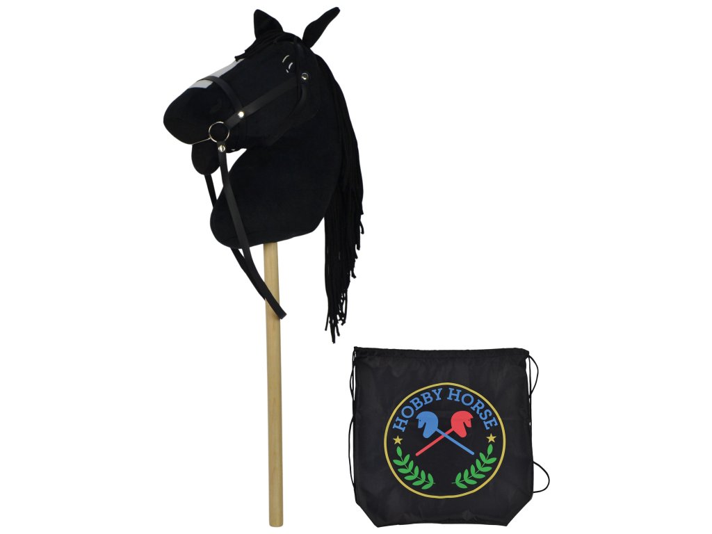 Černý kůň na tyči 73 cm, s černým batohem, se zvukem koně