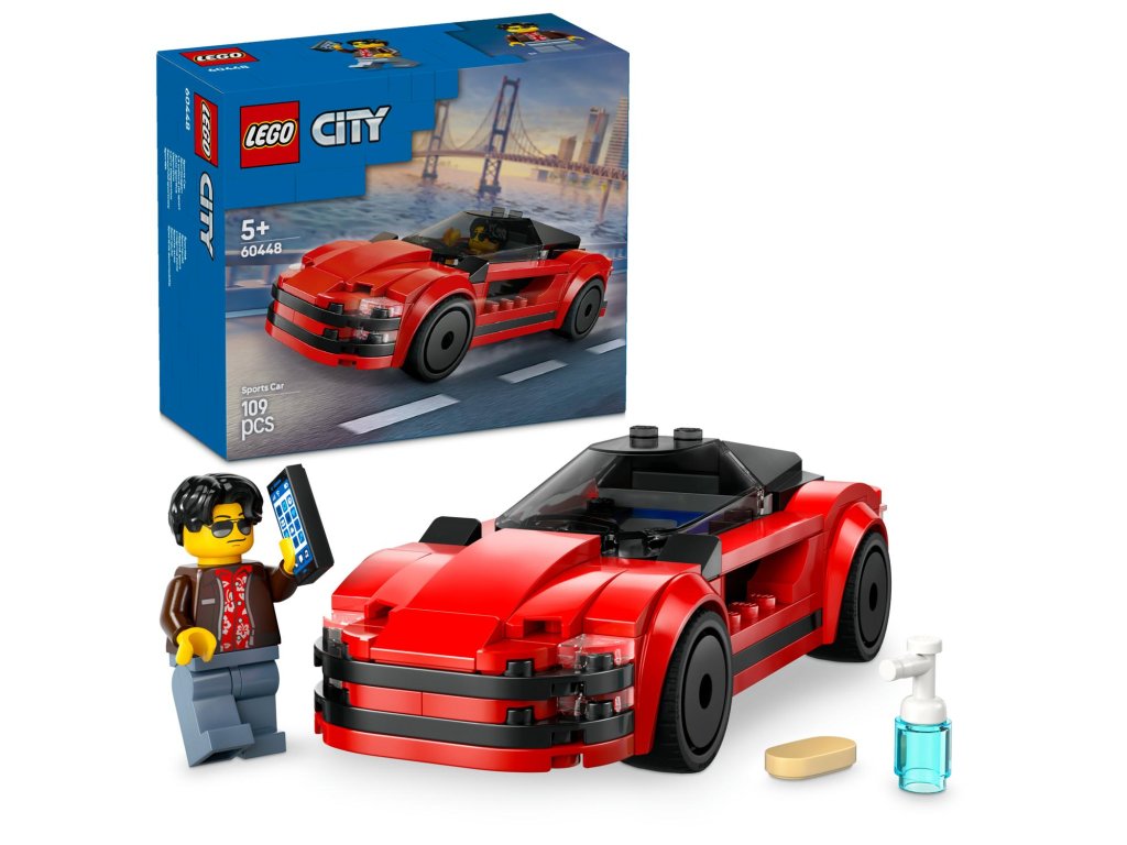 Potěšte svého malého milovníka automobilů od 5 let stavebnicí LEGO® City (60448) Červený sporťák. Tento elegantní model superauta má parádní ráfky, nízkoprofilové pneumatiky a kokpit s tónovaným sklem. Děti posadí minifigurku řidiče za volant, uloží do kufru mobilní telefon a čisticí prostředky a vyrazí na dálnici vstříc dobrodružství ve vysoké rychlosti! Součástí této stavebnice závodního vozu LEGO je tištění návod na stavění a 3D návod v doprovodné aplikaci LEGO Builder, která obsahuje nástroje přibližování a otáčení, aby si děti mohly během stavění prohlížet modely ze všech úhlů. Stavebnice LEGO City přinášejí parádní vozidla, realistické stavby a zábavné postavy, které inspirují k nápaditému hraní bez omezení. Děti můžou auto stavebnici vozidla kombinovat s dalšími sadami z řady LEGO City (prodávají se samostatně) a rozšířit si tak svět herních možností.