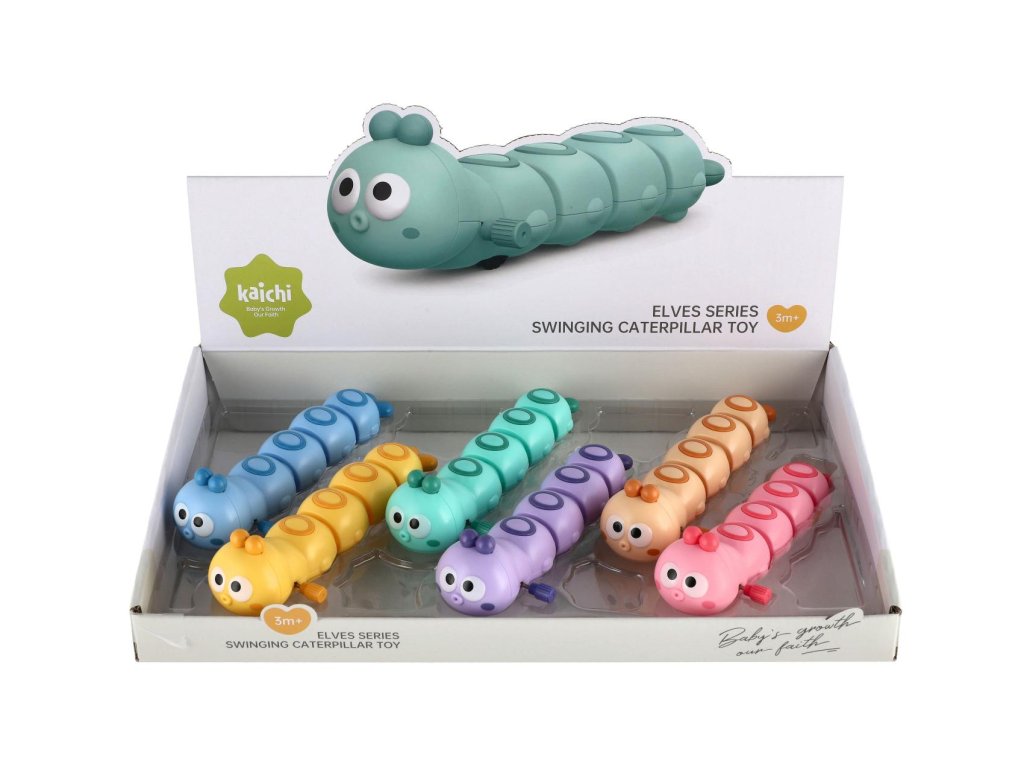Červík/housenka vrtící plast 15cm na klíček 6 barev 6ks v boxu