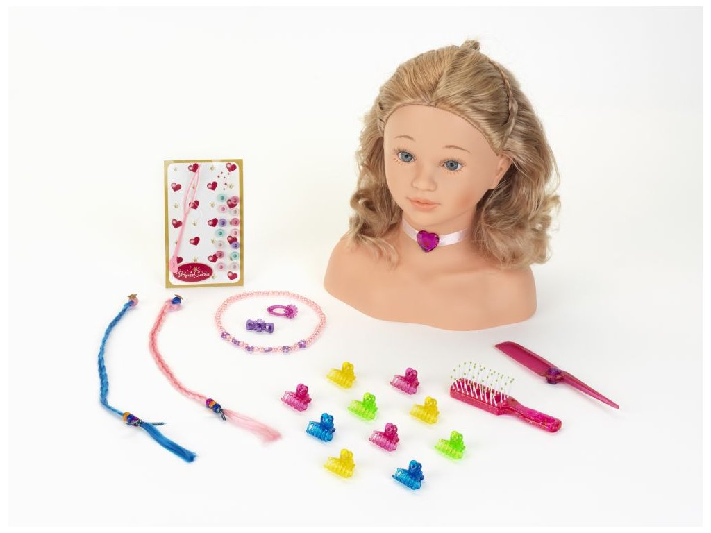 Velká česací hlava se spoustou doplňků. Panenku můžeš učesat, aby byla krásná. Vhodné pro děti od 3 let.