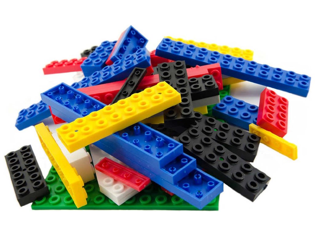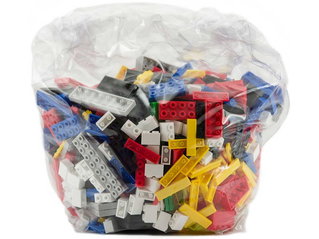 Koš plný kostek v této verzi obsahuje 70-80% standardních základních kostek. Plastový koš obsahuje jeden sáček se 2kg základních kostiček a základen a doplňků. Jsou volně nasypané v přibližném počtu - od každého druhu něco. Proto se každý koš trochu liší. Každý koš je "originál". Celkem zde najdete 360-400 kostiček, ale nejsou tu kolečka pro stavbu autíček ani figurky.