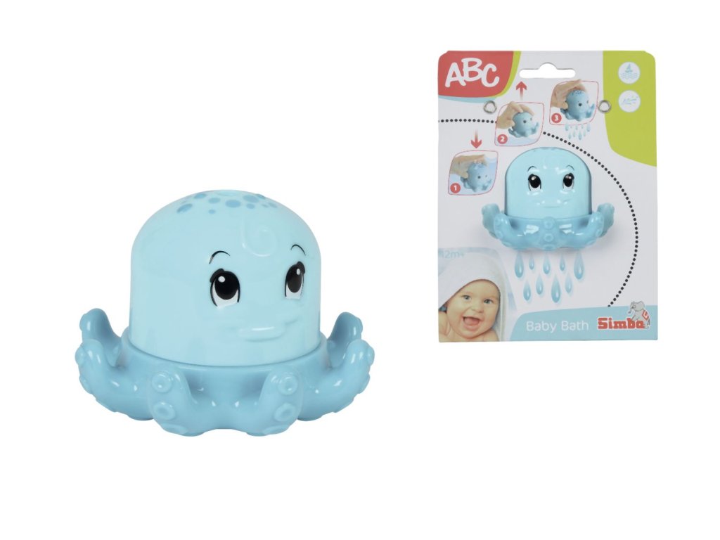 Chobotnička do vany pro zábavnější koupání. Při ponoření do vody se naplní vodou, přidržením otvorů na hlavičce a vyzvednutím chobotničky z vody, voda zůstane uvnitř. Následným uvolněním voda vyteče spodem jako "sprška". Velikost 10 cm.