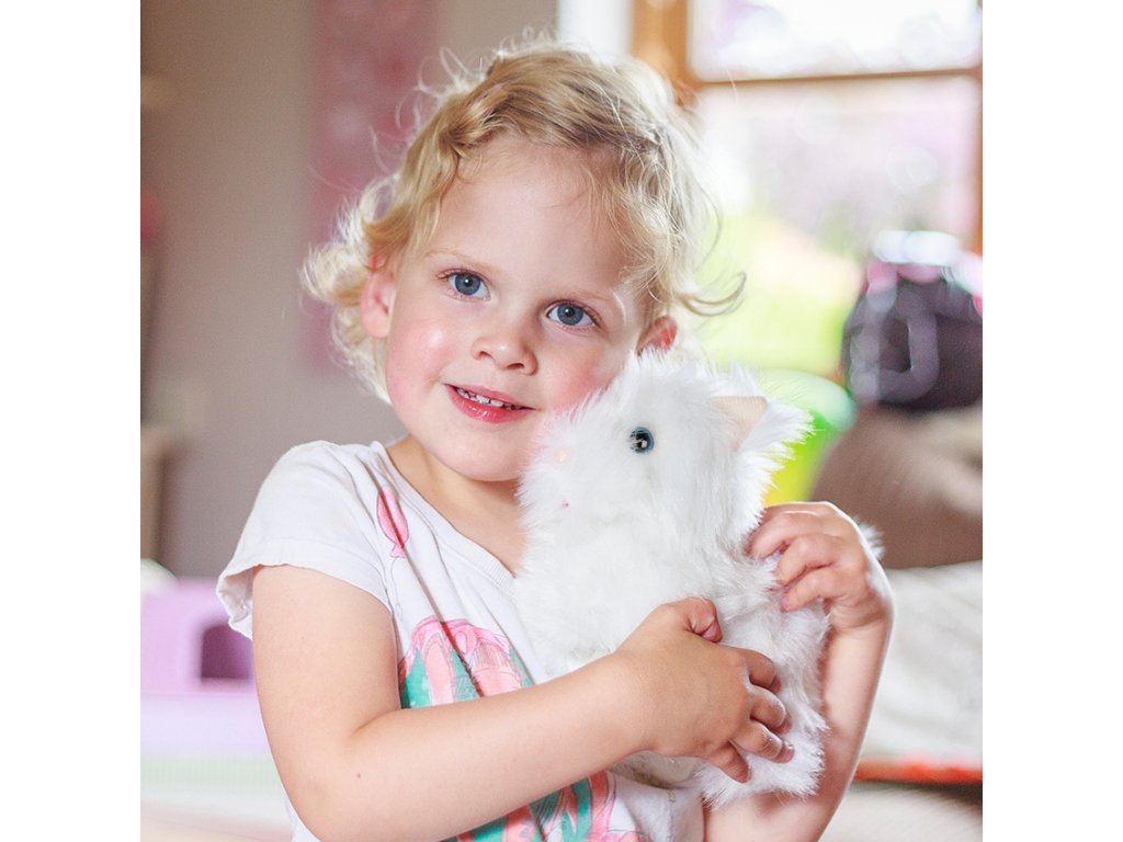 , která chodí, hýbe ocáskem a mňouká. Kočička je z velice příjemné plyše.