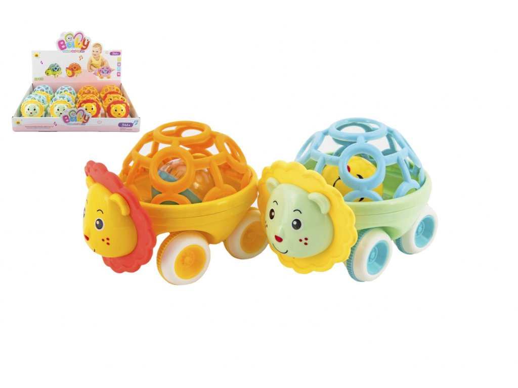 Chrastítko autíčko zvířátko plast 14cm 2 barvy na volný chod 8ks v boxu 3m+