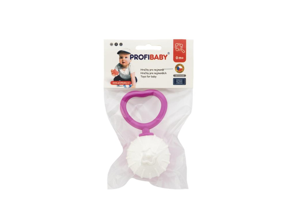 Klasické dvoubarevné chrastítko s ručkou z plastu v retro stylu. Chrastící zvuk děti uklidňuje, navíc se děťátko učí vnímat a zpracovávat okolní podněty.