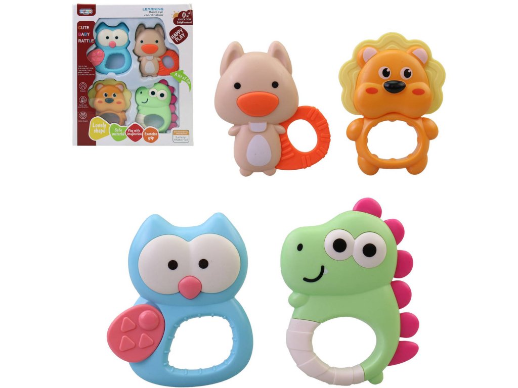 Chrastítko plastové baby zvířátko set 4ks pro miminko v krabici