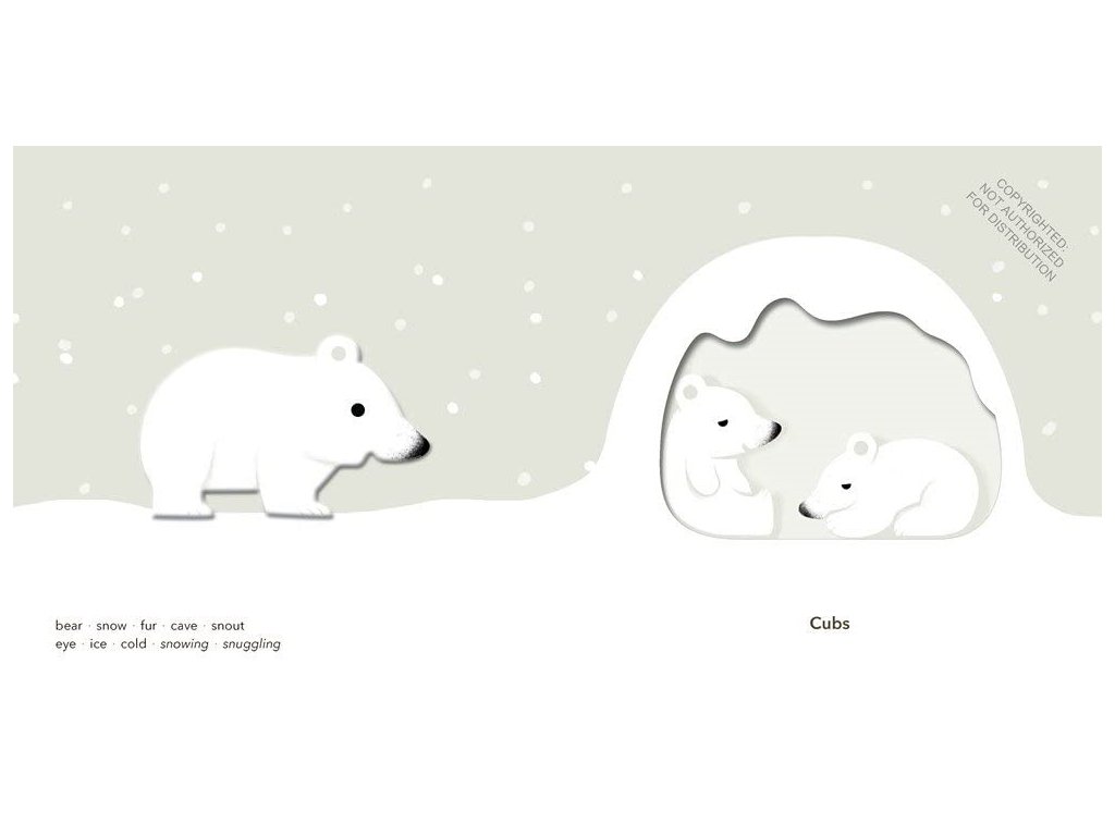 Interaktivní kniha ze série dotkni se a pociť kombinuje vysoce kvalitní textury na každé stránce s přitažlivým vysoce působivým uměním. Pro dobrý vývoj dětí je prokázáno, že děti se nejlépe učí, když získávají znalosti prostřednictvím více smyslů. Knížka podněcuje představivost nejmladších čtenářů a inspiruje, aby poznávali jejich svět. Objevte ledního medvěda na jedné straně a na druhé straně vykrojené doupě. Jednoduché slova na klasickém bílém pozadí tento vícerozměrný přístup pomáhá dětem rozumět pomocí zraku, sluchu a hmatu. Knížka je vhodnou pomůckou k procvičování angličtiny. Vyrobeno z papíru FSC a potištěno rostlinnými inkousty. Hlavní vlastnosti: pevná vazba vyrobeno z recyklovaných materiálů potištěno rostlinnými inkoustyv anglickém jazycevěk 2 - 4 roky