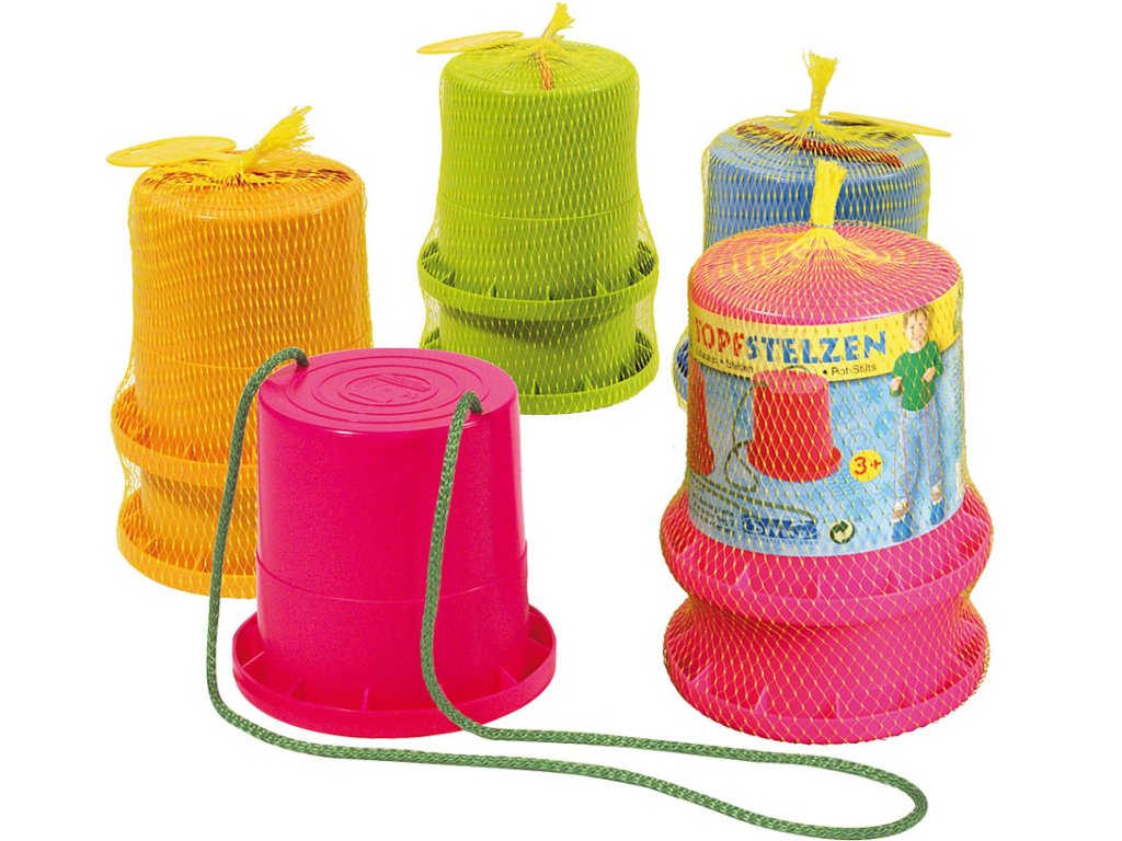 Barevné plastové chůdy vyrobeny z kvalitního, pevného materiálu. Balené v síťce. Součástí balení jsou provázky k připevnění na nohy.