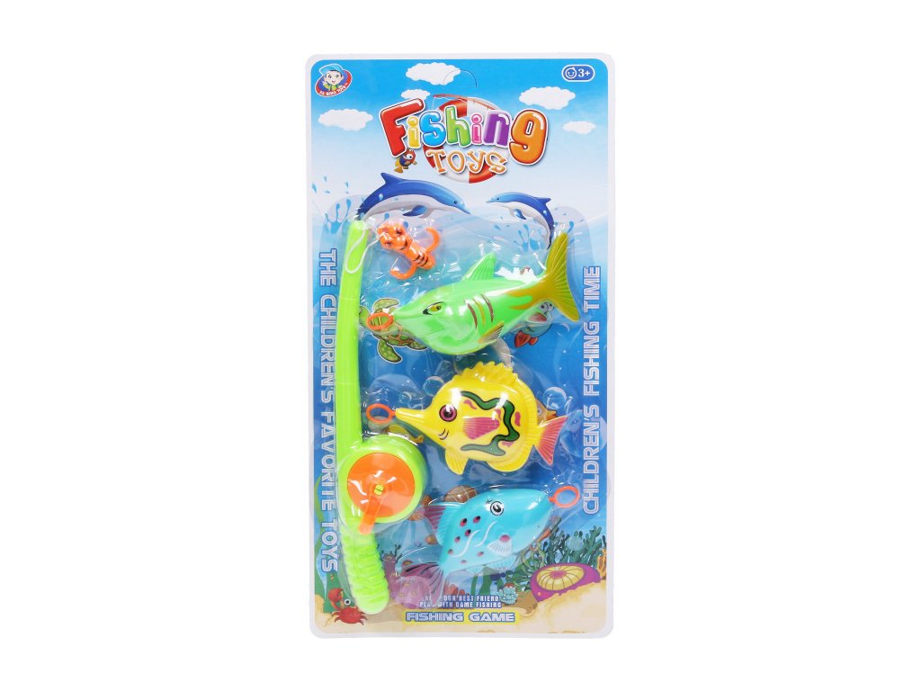 Chytání rybiček. Délka udice 24 cm. Obsahuje 3 rybičky, 1 udici.