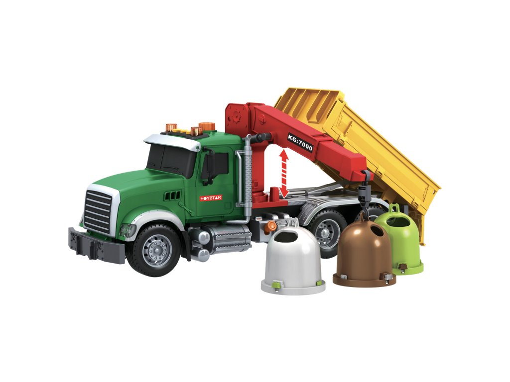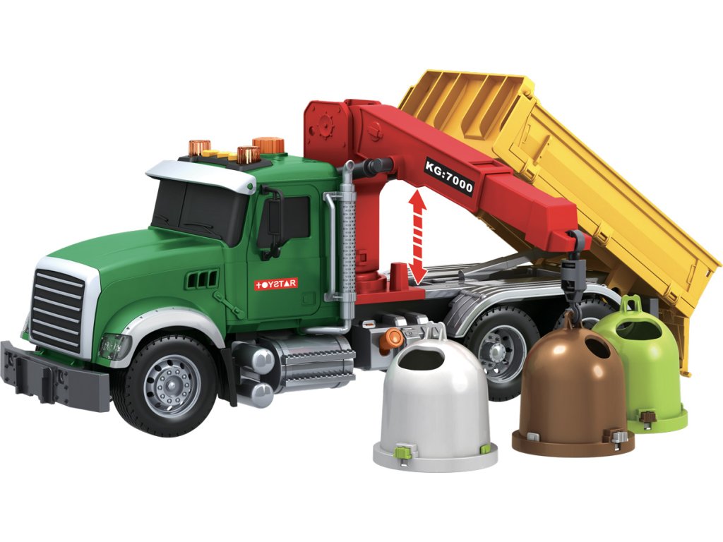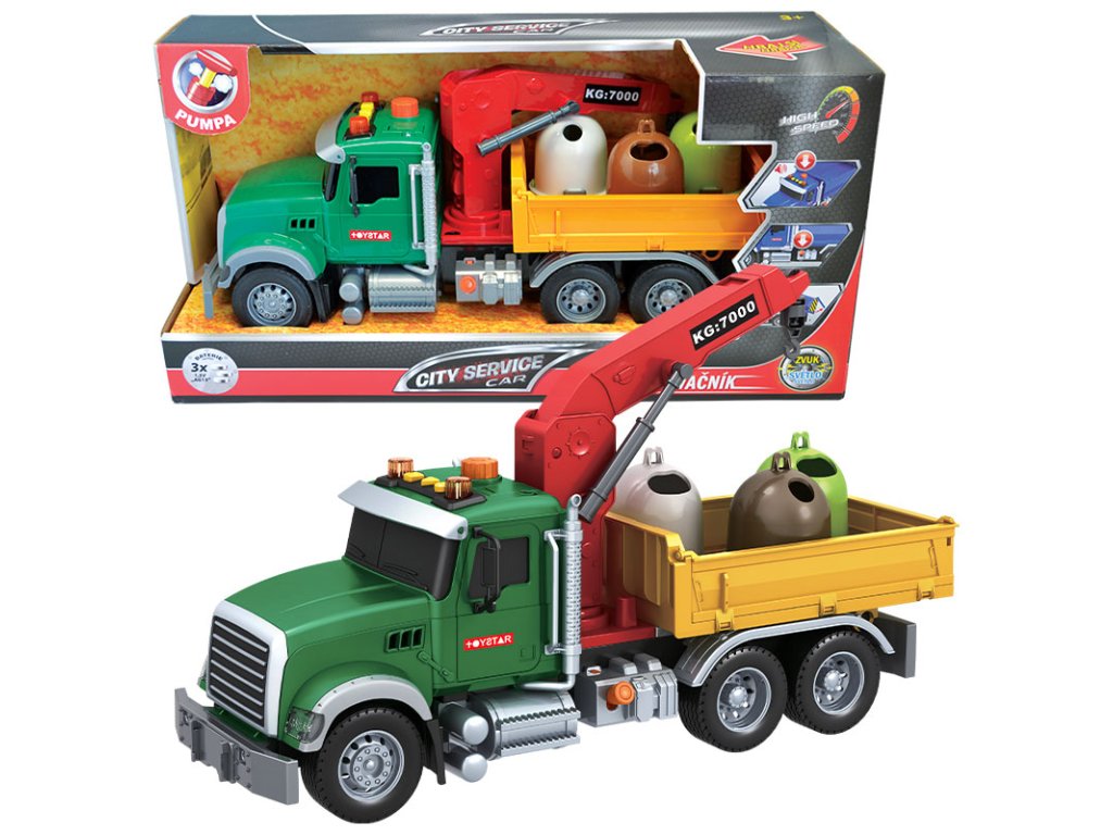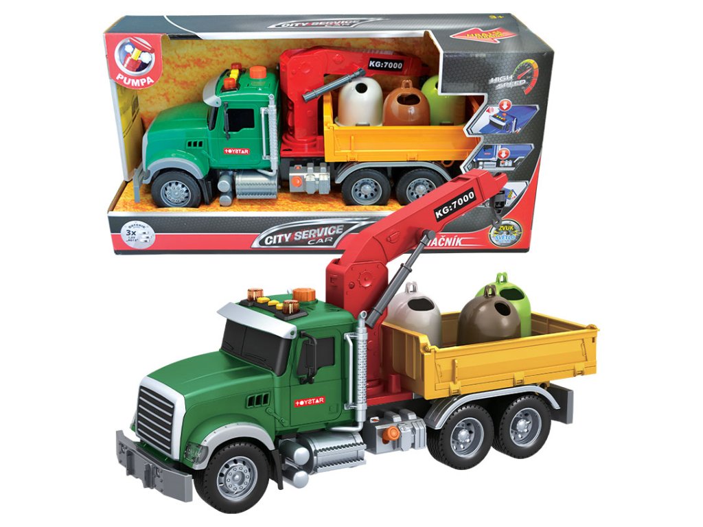 Představujeme CITY SERVICE CAR - 1:12, nákladní auto na odvoz tříděného odpadu. Toto unikátní auto je více než jen hračka, je to nástroj, který vašemu dítěti pomůže pochopit význam třídění odpadu a zároveň poskytuje hodiny zábavy. CITY SERVICE CAR je vyroben z vysoce kvalitního pevného plastu a disponuje řadou úžasných funkcí. Toto nákladní auto je vybaveno speciálním zvedacím ramenem, které dětem umožňuje zachytávat a nakládat kontejnery na tříděný odpad. Hydraulická pumpa, umístěná na střeše kabiny, spolu s páčkou na boku auta, umožňuje dětem snadno ovládat zvedací rameno. CITY SERVICE CAR je rovněž vybaven tlačítky pro zvukové a světelné efekty, které dělají hru ještě živější. Navíc auto disponuje sklápěcí korbou pro snadné vykládání kontejnerů. Set CITY SERVICE CAR obsahuje tři kontejnery na tříděný odpad, což umožňuje dětem seznámit se s konceptem recyklace a třídění odpadu. Auto je poháněno zpětným natažením, takže nevyžaduje žádné složité nastavení. 1. CITY SERVICE CAR je výukový nástroj a zároveň zábavná hračka, která dětem pomáhá pochopit význam třídění odpadu. 2. Vyrobeno z vysoce kvalitního pevného plastu s řadou interaktivních funkcí. 3. Zvukové a světelné efekty pro realističtější zážitek. 4. Obsahuje tři kontejnery na tříděný odpad pro výuku recyklace. 5. Poháněno zpětným natažením pro snadné a bezproblémové hraní.