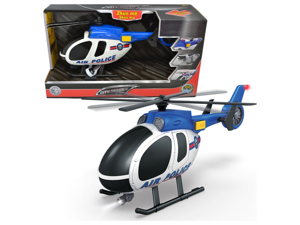 Jmenuje se CITY SERVICE CAR - 1:14 Policejní vrtulník a je připraven k okamžitému vzletu! Jde o nezbytný doplněk pro každého malého strážce zákona, ale i pro vášnivé sběratele. Tento vrtulník je vybaven realistickými světly a zvuky, které přidané k detailně zpracovanému designu, vytvářejí autentický zážitek pro své uživatele. Když tlačítko stisknete, vrtulník se rozzáří a začne vydávat zvuky jako opravdový policejní vrtulník. Tento produkt je ideální pro děti, které se rády ponoří do světa fantazie a role-play her. Vyrobeno z kvalitního a odolného plastu, tento vrtulník je připraven odolat i těm nejnáročnějším dobrodružstvím. Je napájená třemi knoflíkovými bateriemi typu LR44, které jsou již součástí balení, takže hned po rozbalení je připravena k okamžitému použití. Nemějte obavy o bezpečnost - tento produkt je vyroben podle nejvyšších bezpečnostních standardů a je certifikovaný pro děti od 3 let. 1. Autentický zážitek: Realistické světla a zvuky přinášejí akci a vzrušení přímo do vašeho obývacího pokoje. 2. Kvalitní materiál: Vyrobeno z odolného plastu, tento produkt je připraven na cokoli, co na něj vaše malé dobrodružství hodí. 3. Baterie součástí balení: Tři knoflíkové baterie typu LR44 jsou součástí balení, takže hra může začít okamžitě po rozbalení. 4. Bezpečnost na prvním místě: Produkt je certifikovaný pro děti od 3 let a splňuje nejvyšší bezpečnostní standardy. 5. Vrtulník je skvělou hračkou pro děti, které milují fantazii a role-play hry, a navíc posiluje jejich sociální a komunikační dovednosti.