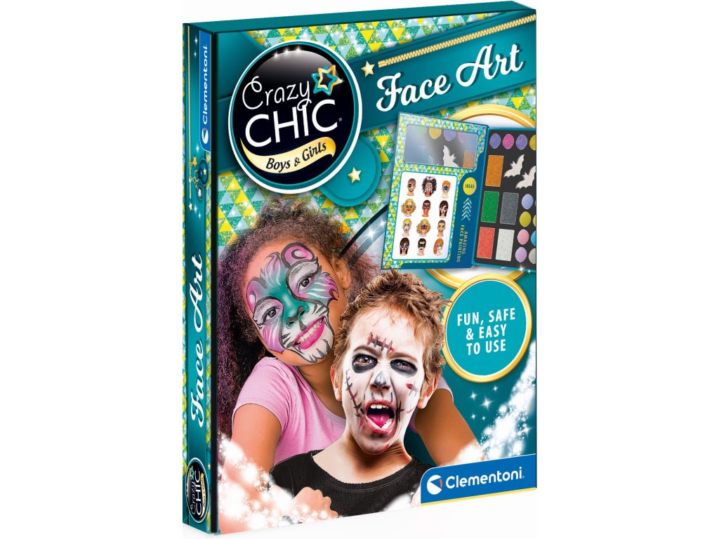 Sada make-upu Crazy Chic Face Art pro děti obsahuje vše, co potřebují pro vytvoření fantastického malování na obličej. Kromě barev na obličej zahrnuje také oční stíny pro stínování, tělové tužky, aplikátor a houbičky. Tato jedinečná sada umožňuje dětem nejenom hrát si s make-upem, ale také rozvíjet svou kreativitu a zručnost.
