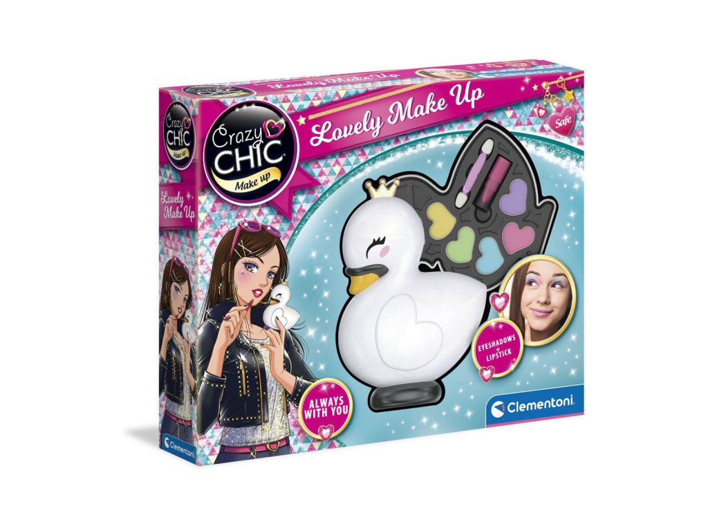 S touto sadou líčidel, v praktickém pouzdru ve tvaru labutě se zlatou korunou, se můžete nalíčit i na cestách. Sada obsahuje 6 trendy očních stínů, 1 rtěnku a aplikátor. Líčidla jsou bezpečná. Herní sada stimuluje kreativitu a manuální dovednost mladých dívek v obasti krásy a kosmetiky.