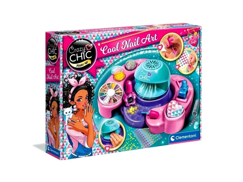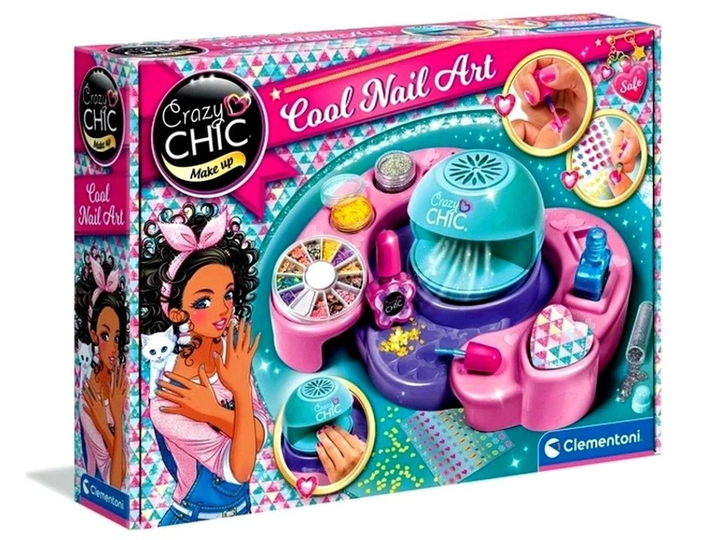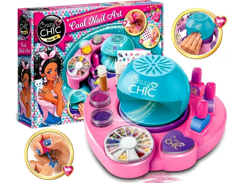 Nehtové studio pro všechna parádnice. Obsahuje sušič nehtů, třpytivý lak na nehty, ozdobné nálepky, korálky, třpytky. Vyžaduje 2x 1,5 V AA baterie, které nejsou součástí balení.