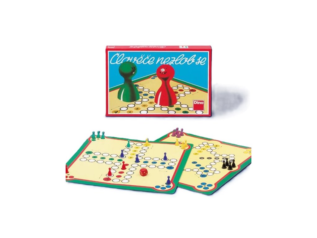 Hra Člověče nezlob se pro 2 - 6 hráčů, vhodná od 6 let. Balení obsahuje 1 herní plán, 24 figurek v 6 barvách, 1 hrací kostku s obrázky, 1 pravidla.