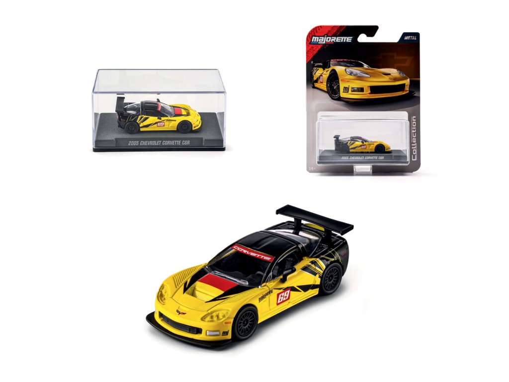 Kovový model autíčka 2005 Chevrolet Corvette C6 R, na volnoběh, s díly, které lze otevřít a/nebo s pohyblivými částmi, s odpružením.V měřítku 1:64, délka: 7,5 cm.