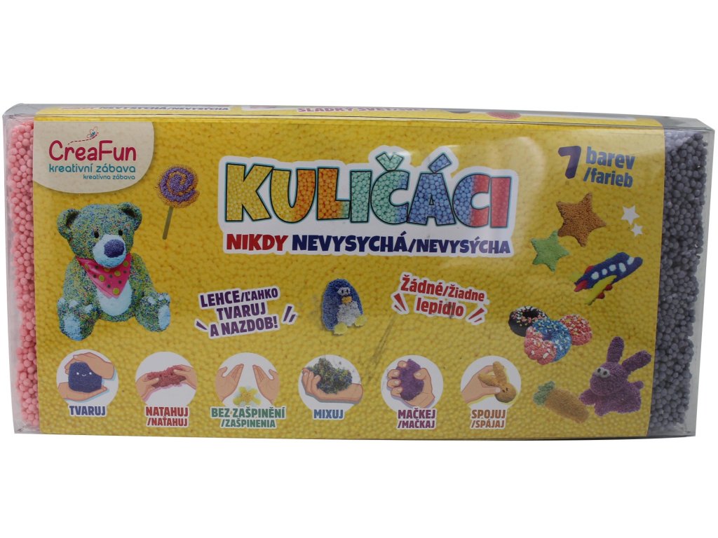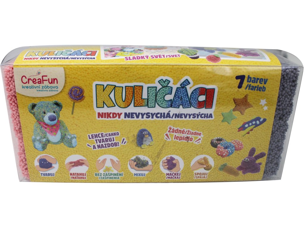 Zábavná, nevysychající kuličková hmota pro kluky a holky je tu! Hmota nevysychá a je velmi dobře tvarovatelná. Barvy mezi sebou můžete míchat a používat hmotu znovu a znovu. Hmota je bezpečná, netoxická a neškodí pokožce. - Rozměr: 17 x 24 x 11 cm - Nevysychá na vzduchu - Doporučený věk: 5+