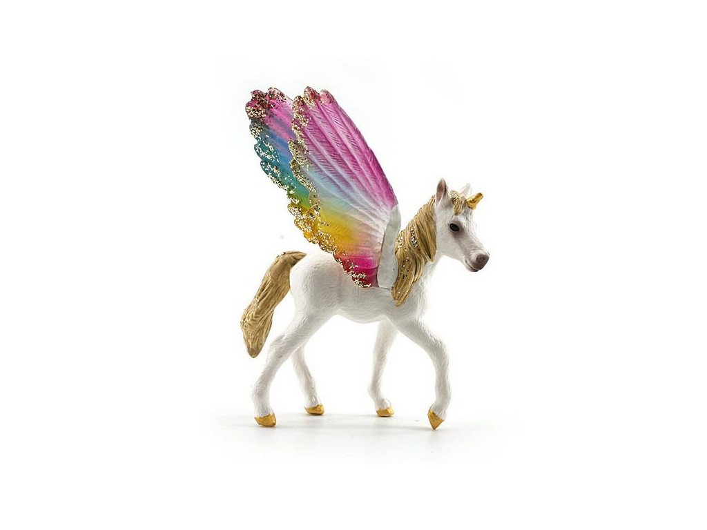 Figurka Jednorožec okřídlený duhový. Velikost 9 cm. Přesné rozměry 7x7,3x9 cm.