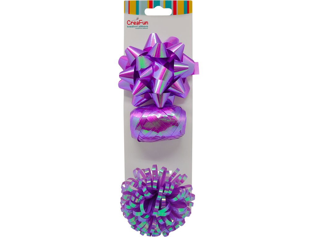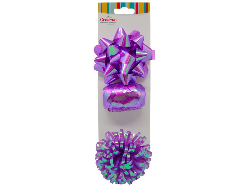 Dárková sada fialová duhově lesklá, 3 ks (stuha 10 m + 2 mašle)