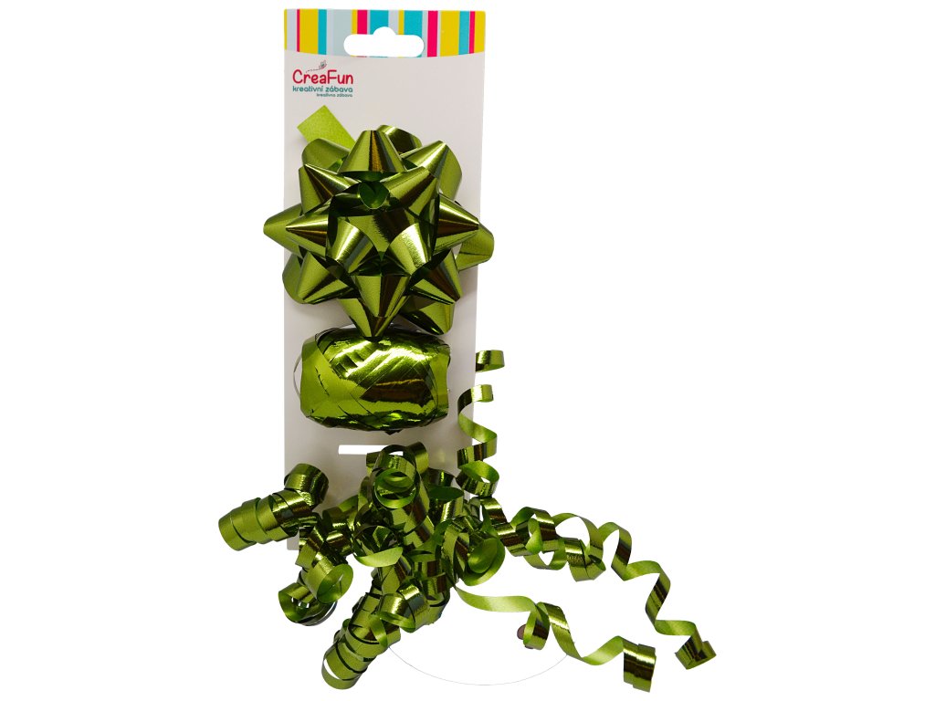 Dárková sada metalická zelená, 3 ks (mašle 9 cm, stuha 10 m, mašlička 6 mm)