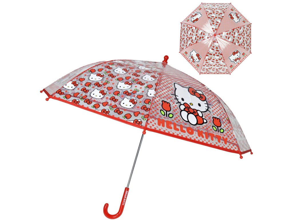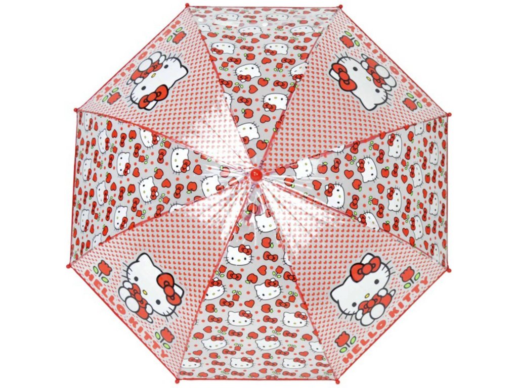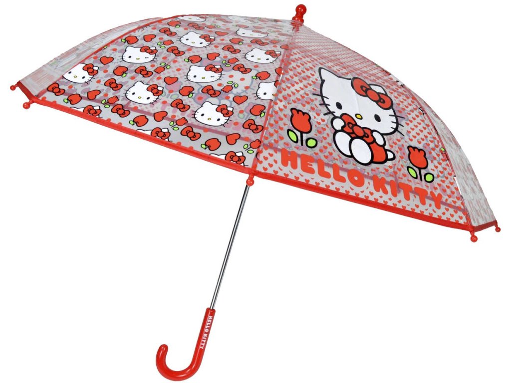 Deštník dětský Hello Kitty červený průhledný 68x85cm automatický