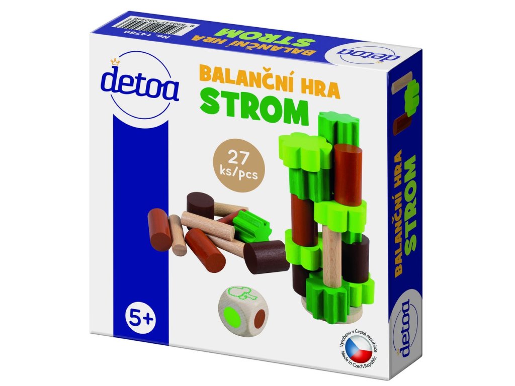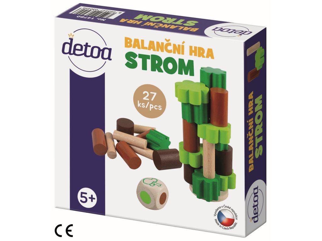 Balanční hra Strom je výborným pomocníkem k rozvoji jemné motoriky rukou, zručnosti a soustředění. A je to zábava! Hoďte kostkou a podle barvy, která vám padne, vyberte dílek a umístěte ho na základnu. Hra pokračuje, dokud nebude strom zcela postavený. Prohrává ten, komu se strom rozpadne pod rukama. Hlavní vlastnosti: balení obsahuje 27 dílůhra pro 1 až 6 hráčůprocvičuje jemnou motoriku rukourozvíjí logické myšlení a trpělivostvyrobeno v České republice