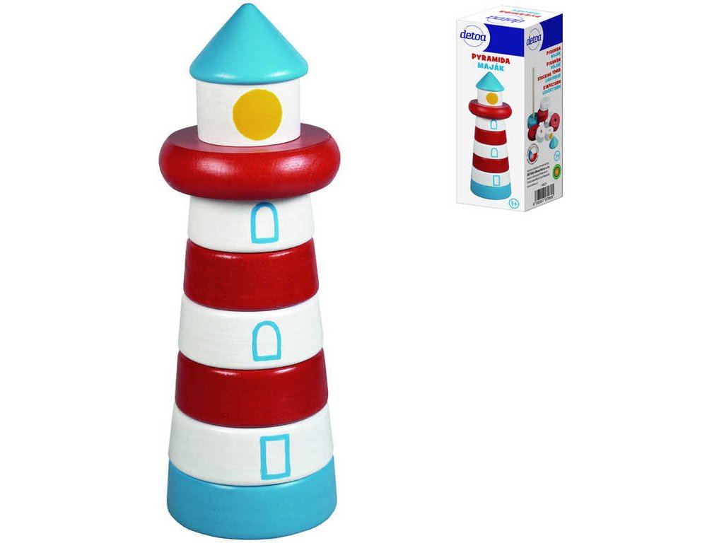 DETOA DŘEVO Baby pyramida navlékací věžička s barevnými kroužky Maják