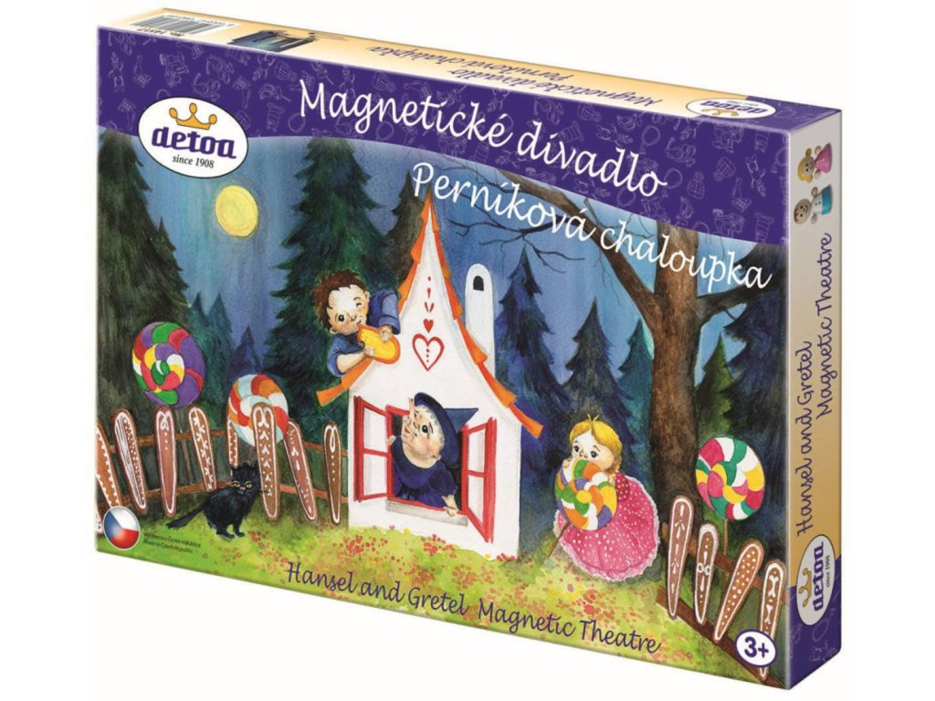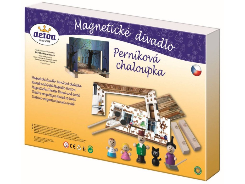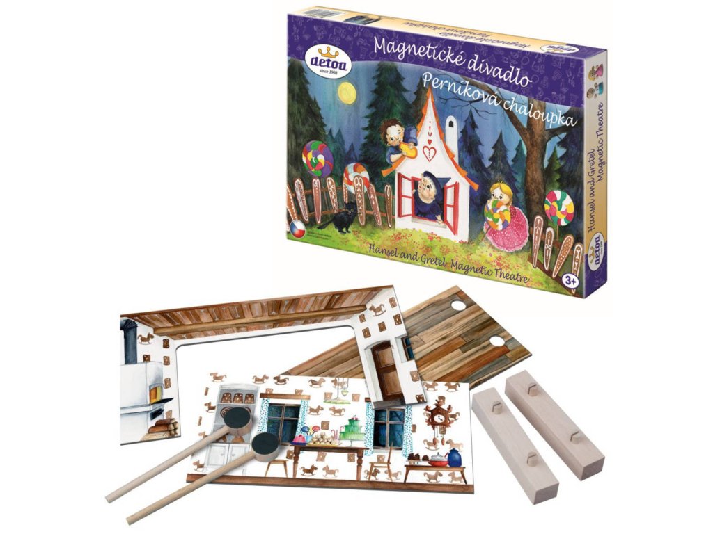 Magnetické divadlo Perníková chaloupka je výborná zábava pro malé i velké na motivy oblíbené pohádky. Ve figurkách je vlepený magnet, který se přitahuje k magnetu ve vodítku. Hra rozvíjí dětskou fantazii a kreativitu při vymýšlení vlastních pohádkových příběhů.