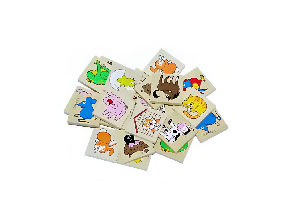 Pexeso z dřevěných kamenů o rozměrech 4x4x0,5 cm s potiskem zvířátek. Děti se zábavnou formou naučí poznávat zvířátka. Hlavní vlastnosti: Výrobek splňuje požadavkyEU na bezpečnost hračekVhodný pro děti od 3 letHra pomáhá při procvičení soustředění a paměti