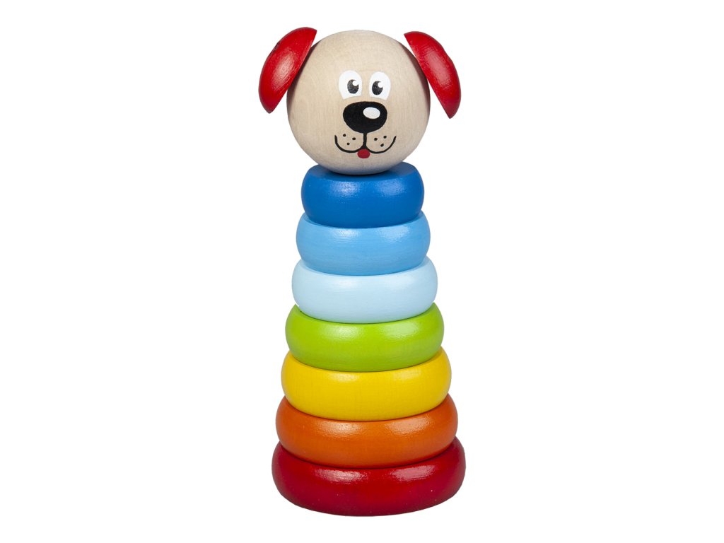 Pyramida pejsek se skládá ze 7 navlékacích dílů a jednoho základního dílu s tyčí.  Hlavní vlastnosti: rozvíjí motoriku rukou a představivost dítětesplňuje požadavky EU na bezpečnost hraček vhodný pro děti od 1 roku