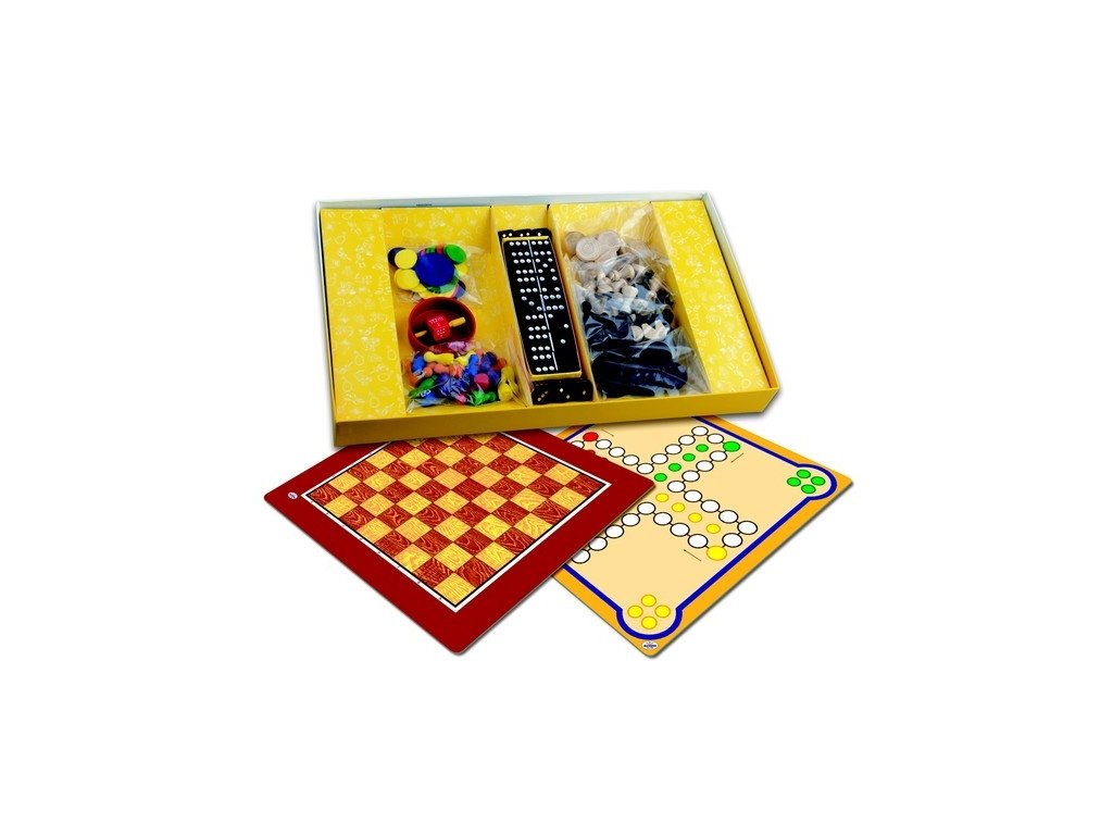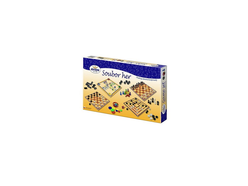 Soubor her Člověče nezlob se, obahuje domino, kostky, šachy, dámu, bleší hru a mlýn. Součástí jsou dřevěné komponenty a hrací desky z tvrdého papíru. Nevhodné pro děti do 3 let. Obsahuje malé části. Hlavní vlastnosti: Zábava pro každou věkovou skupinuVyberte si hru podle nálady a zažeňte nuduVýrobek splňuje požadavky EU na bezpečnost hračekVhodný pro děti od 3 let
