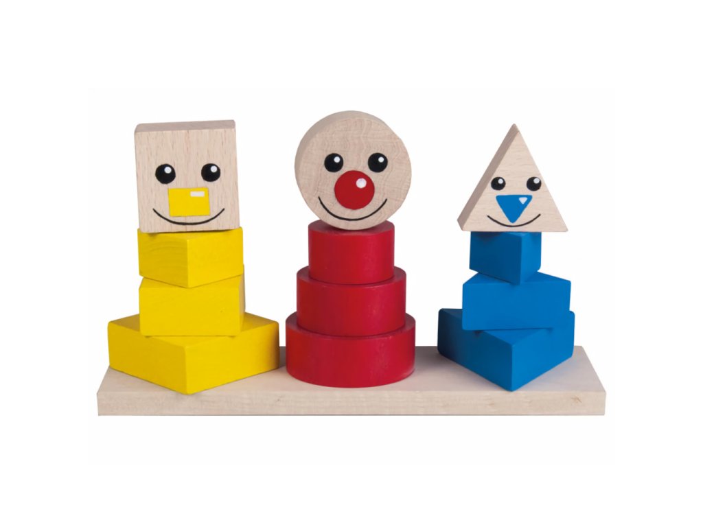 Veselé pyramidy se skládají z 12 navlékacích dílů a jednoho základního dílu se třemi tyčkami. Hlavní vlastnosti: skládací pyramida pomáhá rozvíjet motoriku rukou a představivost dítětevýrobek splňuje požadavky EU na bezpečnost hraček vhodný pro děti od 1 roku