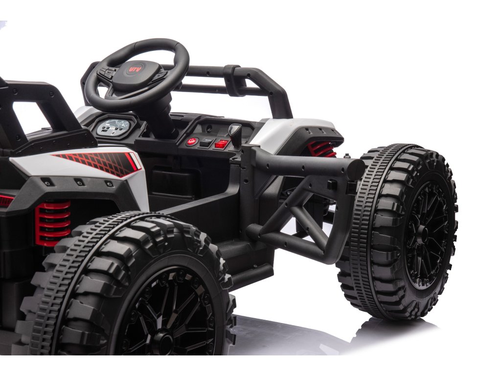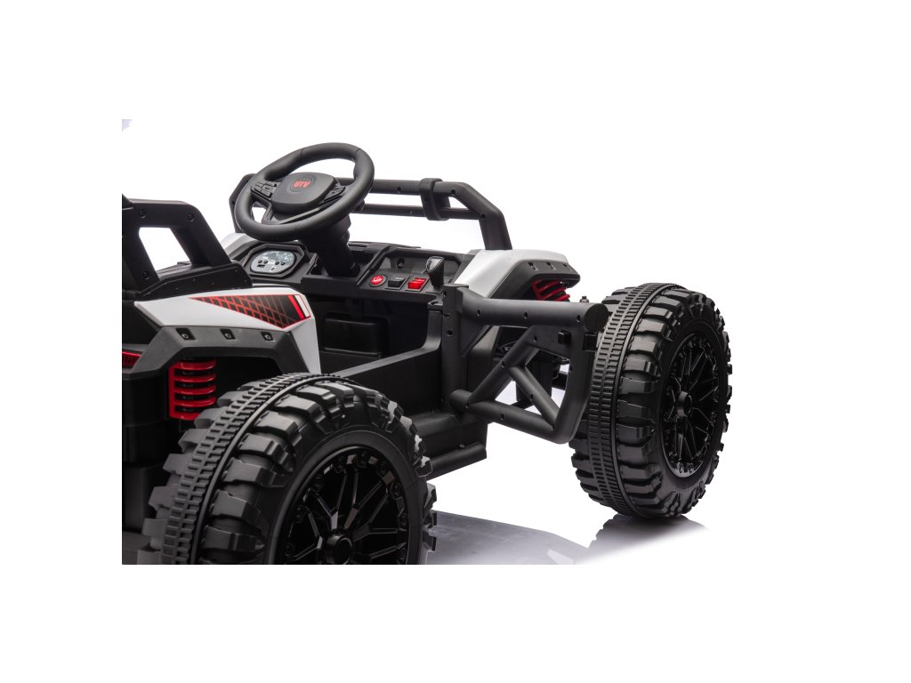 Extrémní zábava pro malé dobrodruhy! Výkonná bugina s dálkovým ovládáním pro rodiče. Připravte se na adrenalinovou jízdu s touto robustní elektrickou buginou Monster Racing! Tento výkonný off-road stroj je navržen pro děti, které milují rychlost a dobrodružství. S masivními koly, sportovním designem a pokročilými funkcemi nabízí nezapomenutelný zážitek z jízdy. Výjimečné vlastnosti: Výkon a technické parametry: • Dvě baterie 12V/7Ah pro extra dlouhou jízdu a vyšší výkon• Dva výkonné motory 2×65W pro skvělou akceleraci• Rychlost 3-6 km/h s možností volby rychlostního režimu• Maximální nosnost 40 kg• Funkce jízdy vpřed i vzad s plynulým ovládáním Dálkové ovládání 2.4G pro rodiče: • Kompletní kontrola nad vozidlem z dálky• 3 rychlostní stupně (nízká/střední/vysoká)• Funkce nouzového zastavení (brzda)• Ovládání všech směrů (vpřed, vzad, vlevo, vpravo)• Dosah až několik desítek metrů Komfort a zábava: • Prostorné sedadlo s nastavitelnými bezpečnostními pásy• Funkční volant s realistickým řízením• Integrovaný hudební systém s USB/SD slotem• Ovládání hlasitosti a přepínání skladeb• LED světla pro autentický vzhled• Indikátor stavu baterie na palubní desce Robustní konstrukción: • Masivní terénní kola pro jízdu v náročnějším terénu• Stabilní čtyřkolový podvozek• Odolná konstrukce z kvalitního plastu• Zadní rám pro extra stabilitu• Funkční odpružení pro pohodlnou jízdu Bezpečnostní prvky: • Samonastavovací tepelná pojistka proti přetížení• Nastavitelné bezpečnostní pásy• Stabilní konstrukce zabraňující převrácení• Dálkové ovládání s možností okamžitého zastavení• Certifikováno podle bezpečnostních norem Kompletní balení: • Elektrická bugina Monster Racing• Dálkový ovladač 2.4G (baterie AAA nejsou součástí)• Nabíječka 12V/24V• Montážní nářadí a šrouby• Podrobný návod v češtině Důležité informace: Vhodné pro: Děti od 3 letNabíjení: První nabití 8-12 hodin, poté po každém použití. Max. 24 hodin.Použití: Vhodné na rovné povrchy, zahradu, terasu. Nevhodné do strmých svahů, schodů nebo bazénů.Montáž: Vyžaduje montáž dospělou osobou (cca 30-45 minut). Tip: Pravidelně kontrolujte dotažení šroubů a stav kol. Po každém použití vozidlo dobijte pro zachování životnosti baterie. Dopřejte svému dítěti pocit skutečného závodníka a rozvíjejte jeho koordinaci a motorické schopnosti zábavnou formou!