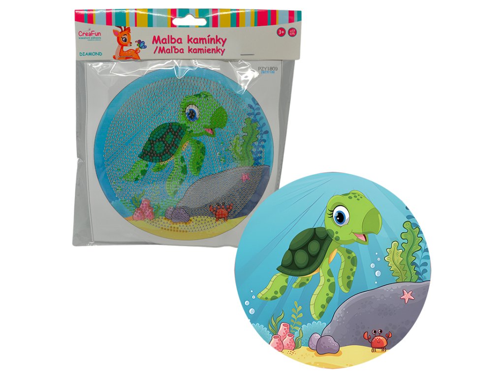 Diamantové malování s rámem - Kreslená želvička 17 cm
