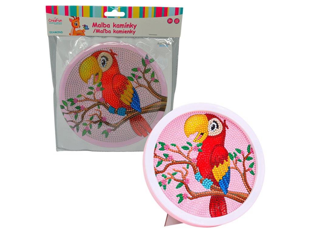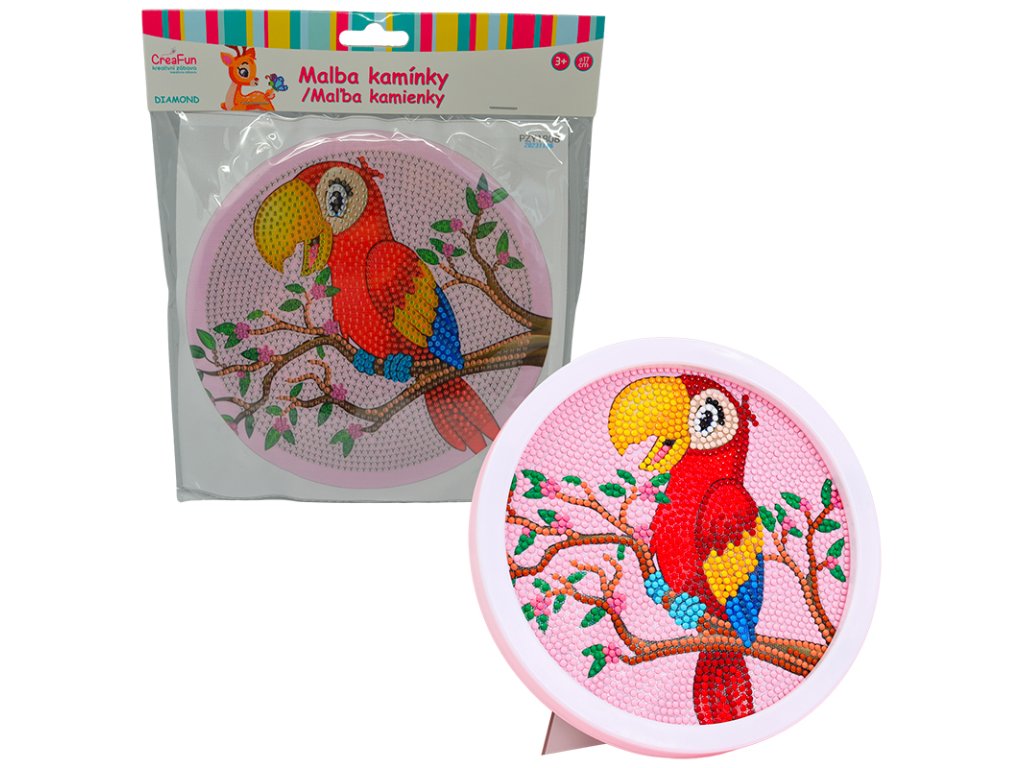 Diamantové malování s rámem - Kreslený papoušek ara 17 cm