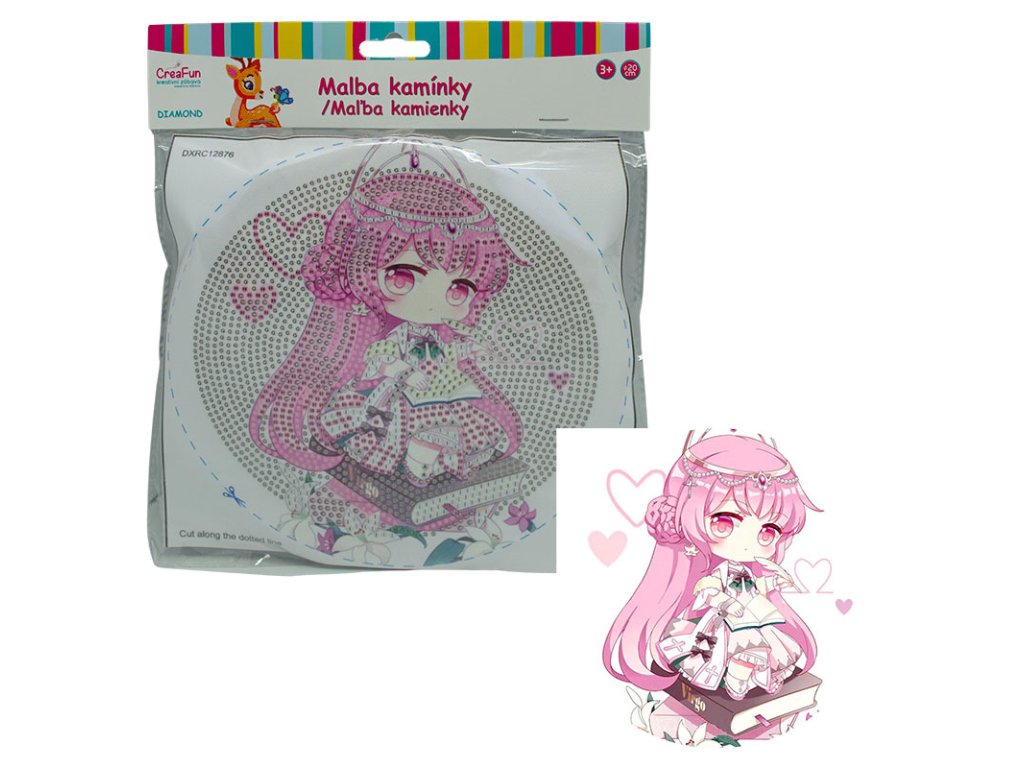 Diamantové malování s rámem - Panenka v růžovém 20 cm