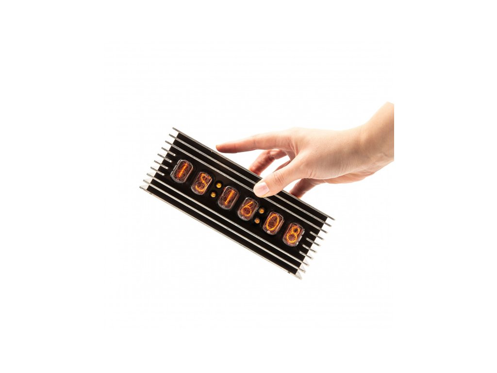 Každá stavebnice obsahuje 6 kusů digitronů. Tyto součástky se již 40 let nevyrábějí kvůli vysoké výrobní ceně, nám se ale podařilo získat poslední zásoby a vytvořit speciální limitovanou edici. Složení stavebnice vám zabere 1-2 hodiny. Hotové Nixie hodiny si jednoduše položíte na noční stolek nebo zavěsíte na zeď.