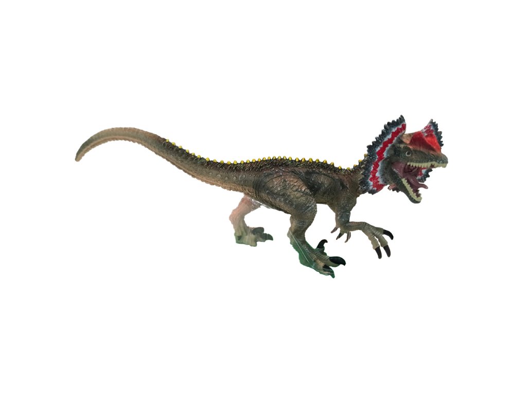 Dinosaurus z vinylu se zvukovými, velmi reálnými efekty na IC kartě. Velikost 62cm.Výrobek na baterie — informace o běžném provozu: Použijte 3x baterie „AGI 3/LR44” 1 V. Baterie jsou součástí balení — pouze pro zkušební provoz.