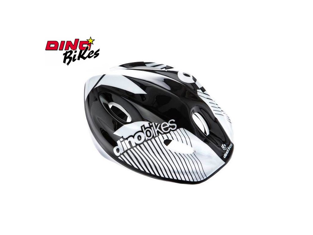 Dětská cyklistická helma Dino Bikes v černo-bílo-stříbrné kombinaci.
