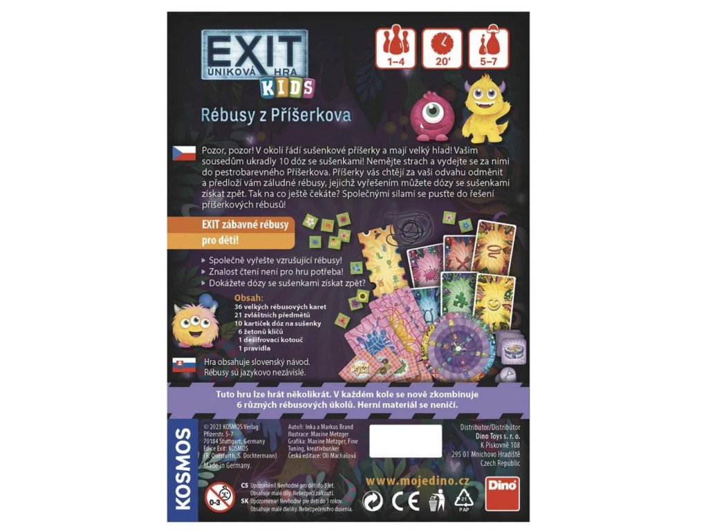 DINO Exit úniková hra pro děti: Rébusy z Příšerkova. Originální rébusová hra pro nejmenší, kterou můžete hrát doma. Poutavé příběhy vás zavedou do krásně ilustrovaného prostředí.