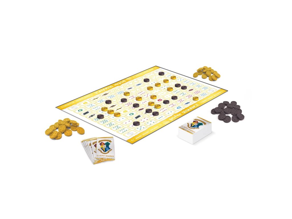 Vytvořte si doma pohodu s pomocí Harryho Pottera. S partou známého čaroděje si zahrajete zábavnou hru Sequence. Cílem karetní partie je vytvořit požadovaný počet sekvencí, neboli řad po 5 žetonech od stejné barvy. Vítězí ten, komu se to podaří jako prvnímu. Sekvence mohou být poskládány horizontálně, vertikálně nebo úhlopříčně. Se skládáním sekvencí vám může pomoci profesor Snape nebo zrzek Ron Weasley, nemilé překvapení Vám naopak přichystá karta s Nymfadorou Tonksovou nebo profesorkou Trelawneyovou. Balení obsahuje: 1 herní plán104 hracích karet 135 žetonů (50 antracitových, 50 zlatých, 35 stříbrných)pravidla Hlavní vlastnosti: rodinná hraideální dárek pro milovníky světa čar a kouzelhra zaručí zábavuprocvičí paměť, postřeh i trpělivostvyrobeno v ČR