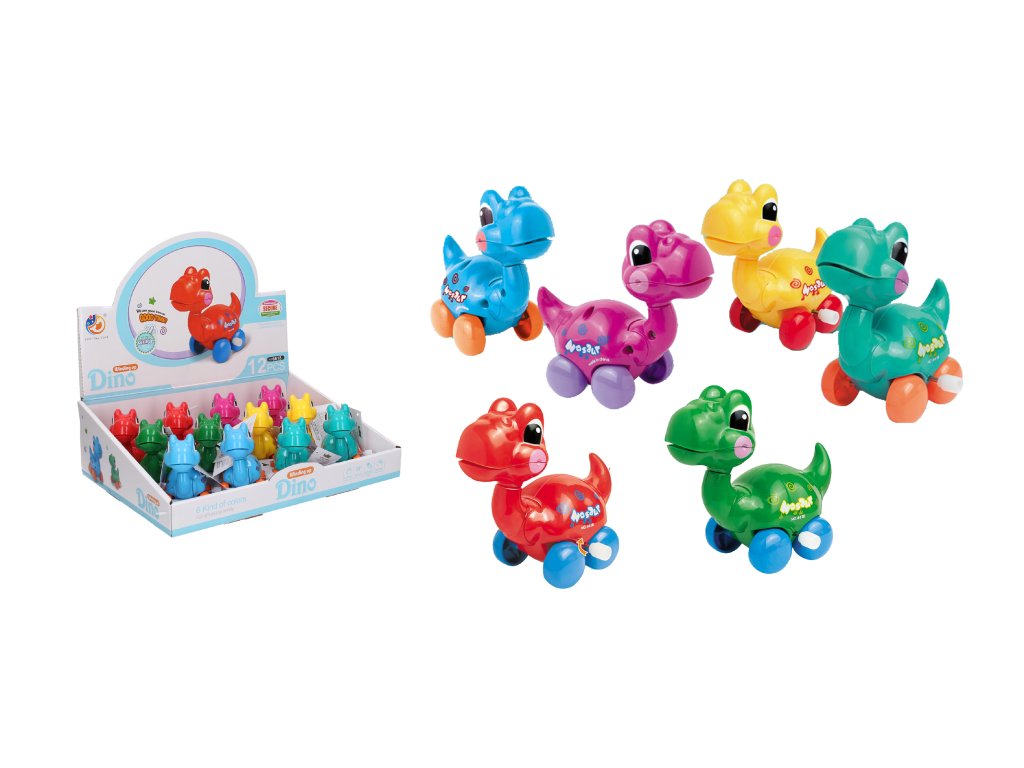 Dino natahovací plastový. Velikost 10 cm. Display box 12 ks. 6 variant - modrá, zelená, červená, žlutá, růžová, modrozelená.