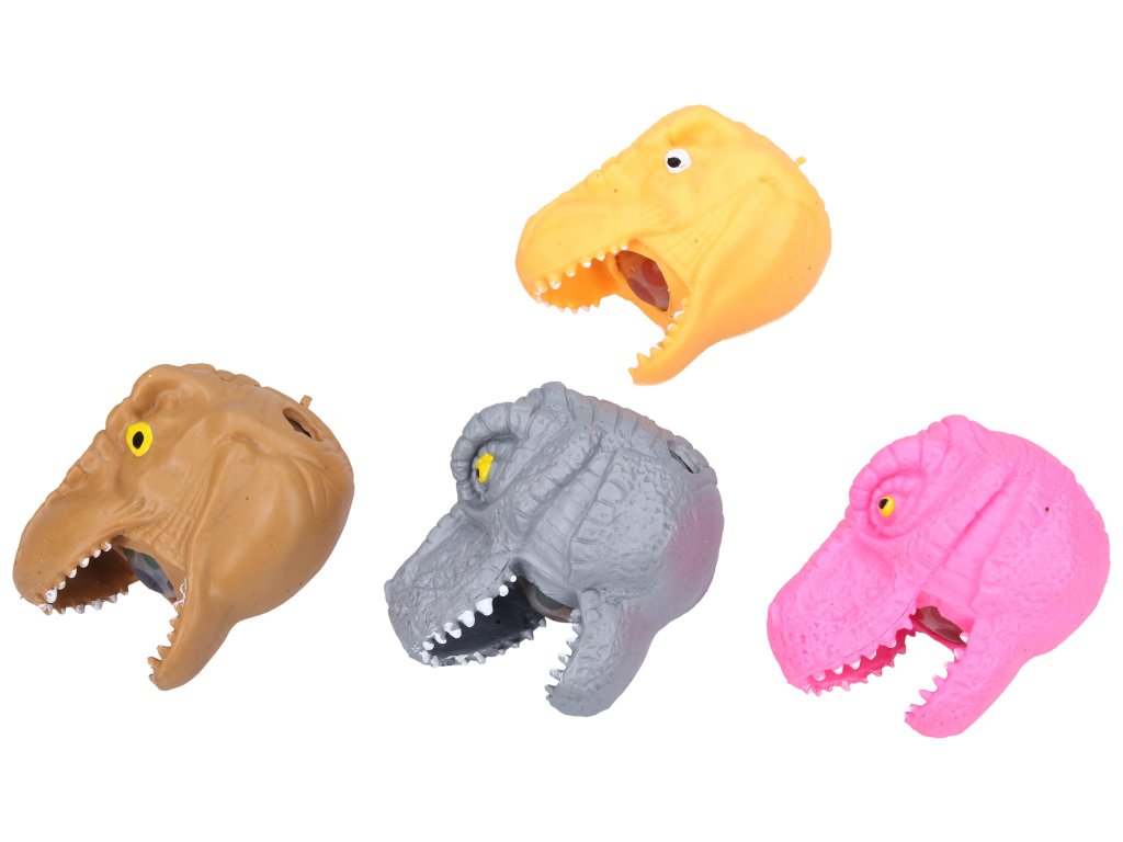 Dinosauří hlava mačkací. Velikost 9 cm. 12 ks display box. 4 varianty - hnědá, šedá, žlutá, růžová.