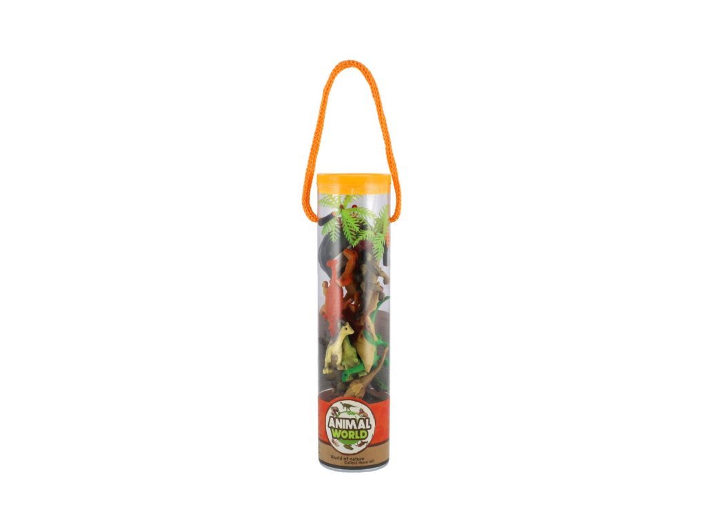 Sada plastových dinosaurů v praktické tubě potěší všechny malé milovníky prehistorického světa. Balení obsahuje několik figurek dinosaurů včetně doplňků v různých druzích a velikostech cca 5–8 cm, ideálních na hraní doma, na cestách i venku.